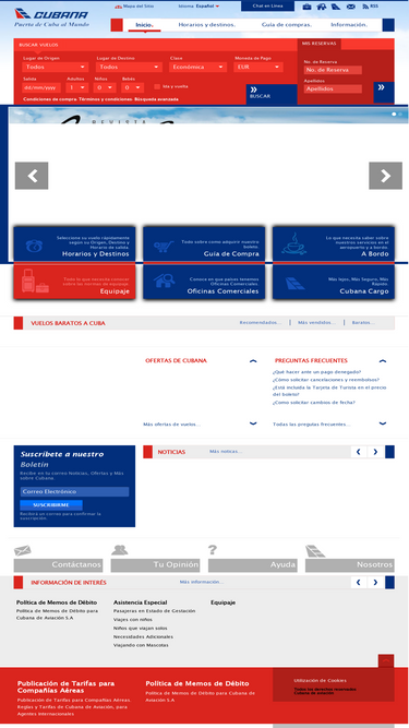 87%Cubana de Aviación: Puerta de Cuba al mundo. Reserva online de vuelos regulares y pasajes baratos a destinos en Cuba, América y Europa al mejor precio.
