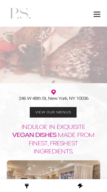 93%Welcome to PS. Kitchen. Plant-Based Delicious-ness in the heart of Times Square, NYC! Cruelty-free dishes made with the freshest and finest ingredients. Our menu features a variety of vegan and gluten-free options that satisfy even the most discerning palates. Dine-in, take-out, or order online today and experience the ultimate in plant-based dining. Come and join us at PS-Kitchen.com
