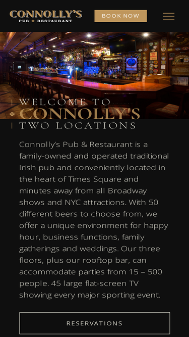 92%Welcome to Connolly’sTwo Locations Connolly’s Pub & Restaurant is a family-owned and operated traditional Irish pub and conveniently located in the heart of Times Square and minutes away from all Broadway shows and NYC attractions. With 50 different beers to choose from, we offer a unique environment for happy hour, business functions, family gatherings and … Home Read More »