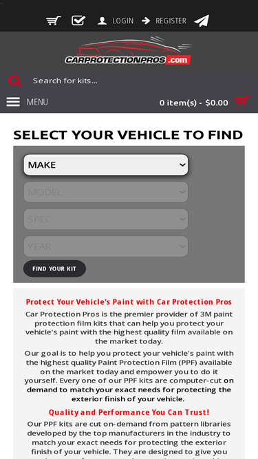 92%Car Protection Pros sells 3M Scotchgard Pro Series Pre-Cut Protection Film kits. All of our pre-cut paint protection kits are custom cut for each vehicle....