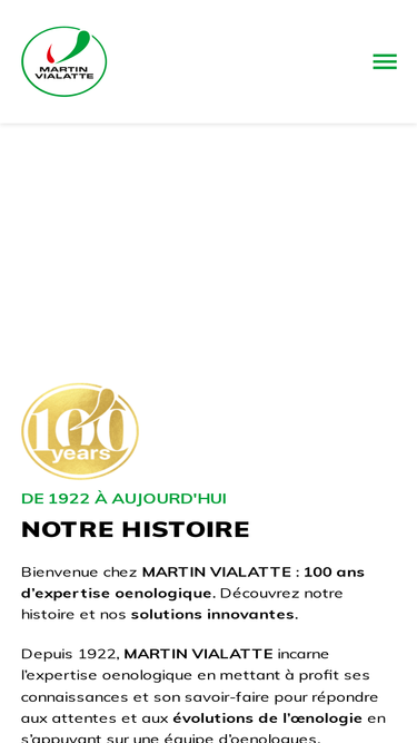 100%Découvrez les dernières innovations en oenologie de Martin Vialatte. Notre recherche et développement s'appuient sur un siècle d'expertise !