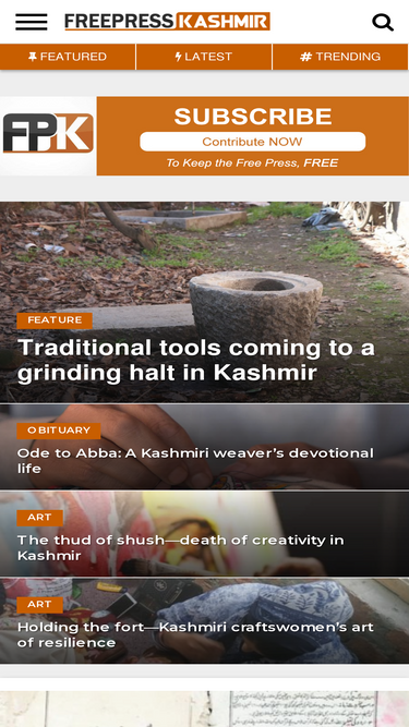 69%Free Press Kashmir is a weekly published from Kashmir. Free Press Kashmir strives to connect, analyse, and criticize voices on a digital medium. Free Press Kashmir is a weekly published from Kashmir, which has historically been a meeting point of diverse civilisations and thoughts.