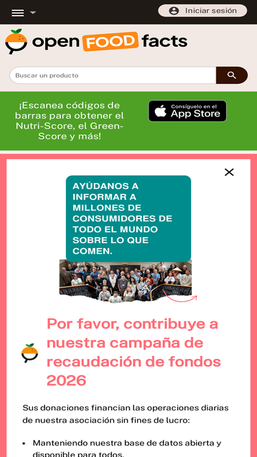 74%Una base de datos colaborativa, gratuita y abierta de Ingredientes, información nutricional e información sobre los productos alimenticios del mundo entero