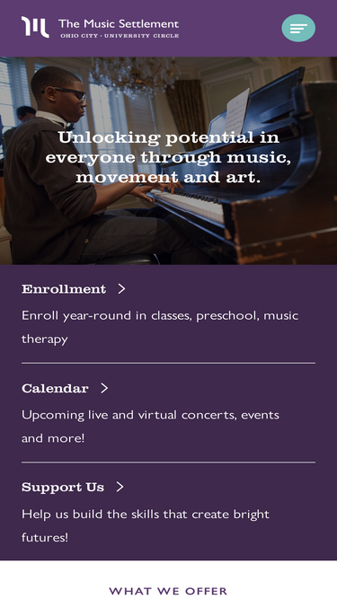 77%The Music Settlement offers music instruction, music therapy, and preschool, day school, and kindergarten in Cleveland's historic University Circle neighborhood.