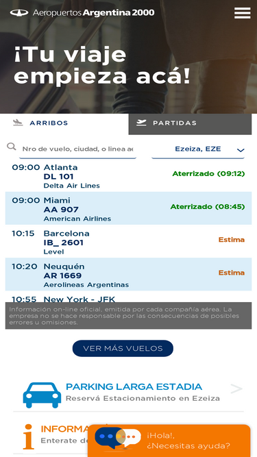 100%Te damos la bienvenida al Aeropuerto Internacional de Ezeiza Ministro Pistarini. Vuelos · Estacionamiento · Salas VIP · Cómo llegar · Locales