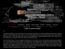100%the best practice & travel guitar? the lapstick! the ultimate electric travel guitar that can truly be played on bus, plane or train without disturbing fellow travelers.