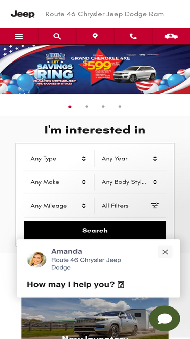 68%we have a great selection of new & used vehicles. whether you want a car, truck, suv, service or parts, route 46 chrysler jeep dodge can help.
