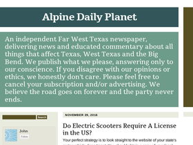 The West Texas and Big Bend Internet newspaper, timely stories filed 24/7. News to sports, kindergarten to grad school, city council to the U.S. Congress. All with a dose of informed opinion. For all Texans.