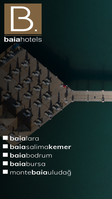 59%the first hotel investment was in 2004, forming the baia bodrum hotel in bodrum gündoğdu. following this, in the city of bursa uludağ opened the monte baia hotel, in 2009 in the region of lara antalya, the third in the chain of baia hotels opened called the baia lara, finally, in the centre of bursa the fourth hotel, baia bursa was established.