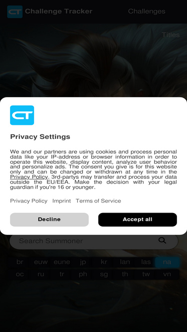 100%Lookup and track your League of League of Legends Challenges Progress. Compare your Challenge stats with others in any region.