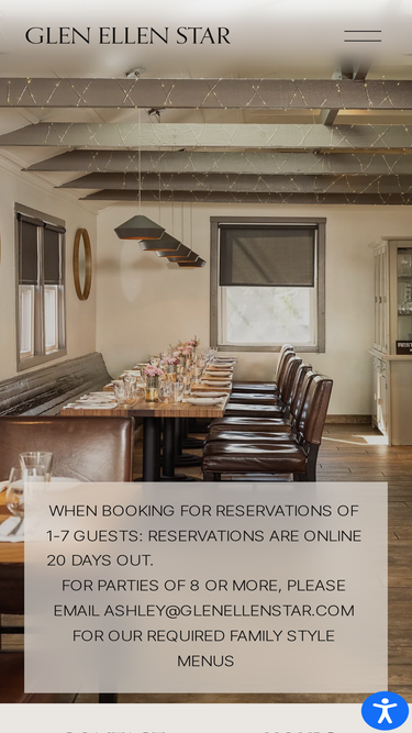 70%Glen Ellen Star is a wood-fired restaurant in Glen Ellen serving seasonal pizzas, farm fresh entrees, and local wines. Dinner nightly. Reservations online.