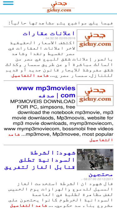 83%شاهد آخر الأخبار التي يتم قراءتها الآن من خلال موقع جدني وهو دليل بحث مصور يعرض آخر كلمات البحث وصفحات البحث في المتعلقة بمواضيع الأخبار والمقالات والمواقع والصور والاعلانات المبوبة والوظائف والعقارات والسيارات