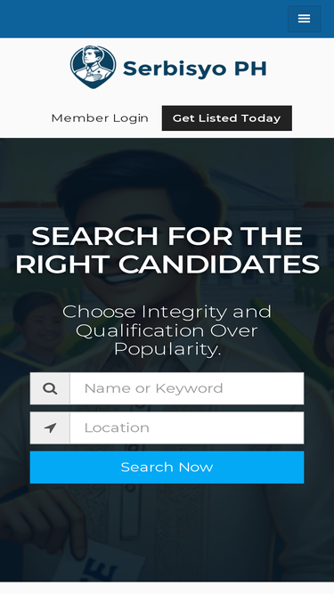 84%Discover profiles of political candidates from all over the Philippines for the 2025 elections. Learn about their background, platforms, achievements, and plans for your community — all in one trusted place. Stay informed, vote wisely.