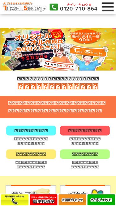 98%オリジナルタオルのプリント作成・制作・名入れならタオルショップジェイピーへ!オリジナルタオルを1枚から100枚以上の発注まで格安値段で作成・印刷可能。1万点以上の実績と90%のリピート率を誇り、全国配送可能。無料お見積り・サンプルはお気軽に。