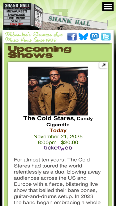 66%Shank Hall is located at 1434 N Farwell Ave, Milwaukee, WI 53202. Call us at 414-276-7288 on any show day, a few hours before show time to the end of the s...