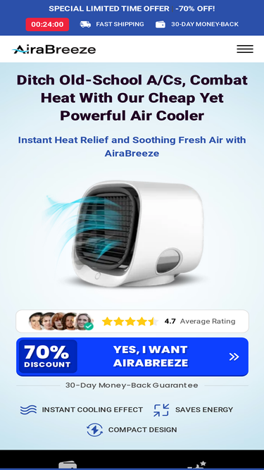 92%AiraBreeze is a revolutionary air-cooling solution that fits all homes and needs. Enjoy installation-free, portable, electric, and energy-efficient air conditioning to combat the heat.