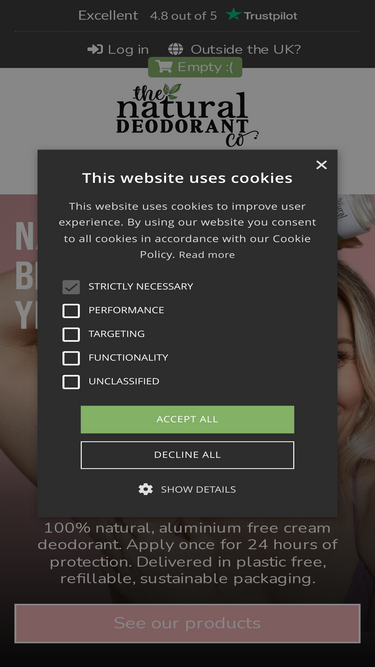 95%The UK's Most Effective Natural Deodorant. Award winning, 100% natural, vegan, cruelty free, plastic free, aluminium free.