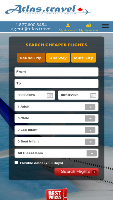 87%Atlas Travel is a TICO registered (Registration # 4595245) based in Toronto, Ontario, Canada to provide you safe and secure travels as well as ensuring access to all the international and domestic flights. We provide the lowest prices for all your flights or Airlines. flights, airlines, book, best, return.