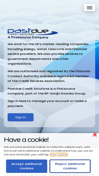 94%pastdue credit solutions are a market leading debt collection agency in the uk. pdcs are regulated by the financial conduct authority and iso 27001 accredited
