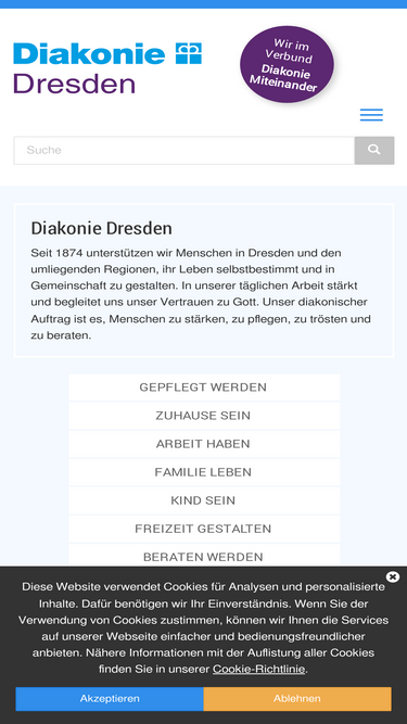 80%Die Diakonie Dresden ist in der Altenhilfe, Kindertagesbetreuung, Jugendhilfe, Erziehungshilfe, Sozialarbeit, Behindertenhilfe und Psychiatrie tätig.