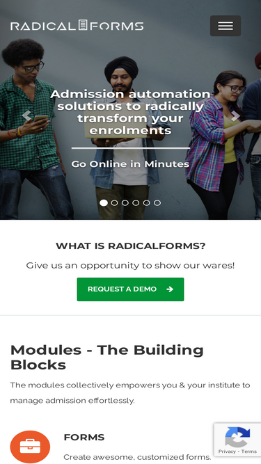 59%streamline your admission process with radicalforms online admission management system. a complete end to end enrolment management solution that is free, easy to use and fully customizable. start receiving applications and fees online in minutes!
