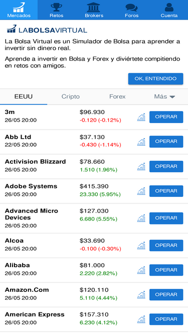 96%simulador de bolsa fácil e intuitivo. en este juego de bolsa aprenderás a invertir en bolsa como los profesionales: cfds y ordenes condicionales.