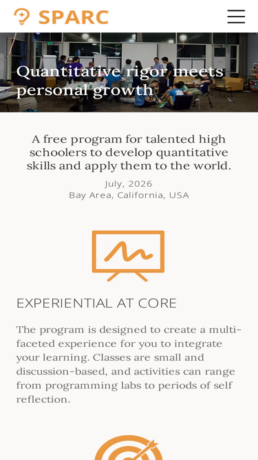 88%SPARC is a summer program that trains talented high schoolers to develop quantitative skills and apply these skills to themselves and the world.