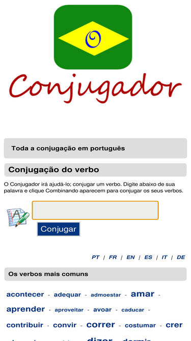 85%o conjugador é um site dedicado à conjugação em português. você encontrará todos os verbos portugueses e brasileiros conjugados em todos os tempos e de todos os modos.