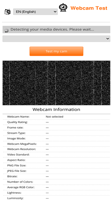 with webcamtest.io test your webcam online to check if it is working properly and find out useful information about it