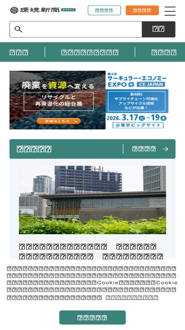64%環境新聞オンラインは、カーボンニュートラルの達成や循環経済の構築が世界的なターゲットとなる今、環境新聞は、脱炭素、SDGs、ESG、資源循環、廃棄物の適正処理、下水処理、水・土壌管理など、全地球的な課題をビジネスチャンスへと変革する力強い環境経営を的確&タイムリーなニュース発信でサポートします。