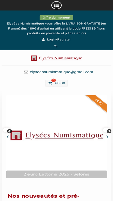 80%Bienvenue chez Élysées Numismatique, vente de monnaies, billets, médailles, métaux précieux, objets d'art... Découvrez toutes nos nouveautés.