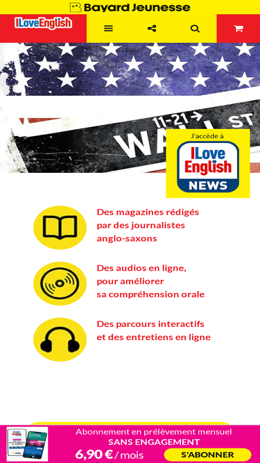 85%Découvrez I Love English News, le meilleur média pour rester connecté à l'actu, tout en progressant en anglais. Le magazine I Love English devient I Love English News, la nouvelle application d’actualité en anglais pour aider les collégiens à progresser au quotidien en anglais : 5 articles par jour en anglais, à lire, écouter ou regarder, écrits par des journalistes anglo-saxons sur des thèmes internationaux : sport, nature et environnement, tech, science et espace, culture... En 1 clic j’adapte le niveau de difficulté de mon article (3 niveaux différents de débutant à intermédiaire). Des versions audio, pour travailler son accent Des exercices et des activités pour s’entrainer Des mots de vocabulaire traduits à mémoriser dans chaque article. Ces mots peuvent ensuite être réinvestis et mémoriser dans l’onglet “Vocabulary”. Une solution ludique et efficace pour maîtriser l'anglais tout en s'informant !