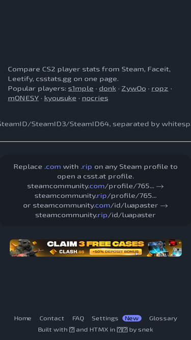 96%welcome to the leading cs:go site in the world, featuring news, demos, pictures, statistics, on-site coverage and much much more!