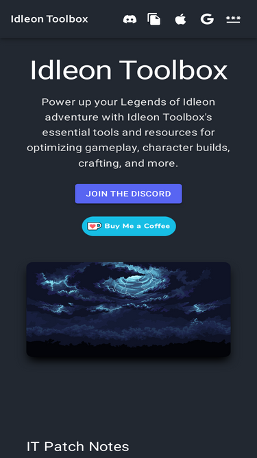 92%Power up your Legends of Idleon adventure with Idleon Toolbox's essential tools and resources for optimizing gameplay, character builds, crafting, and more.