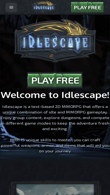 100%Idlescape is a free text-based browser 2D MMORPG that offers a unique combination of idle and MMORPG gameplay. Enjoy group content, explore dungeons, and compete in different game modes to keep the adventure fresh and exciting. No download required.