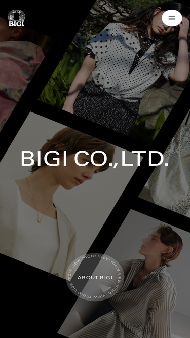 85%BIGI CO.,LTD.(株式会社ビギ)は、YOSHIE INABA(ヨシエ イナバ)をはじめとする衣料品ブランドの企画・製造・卸を行っています。