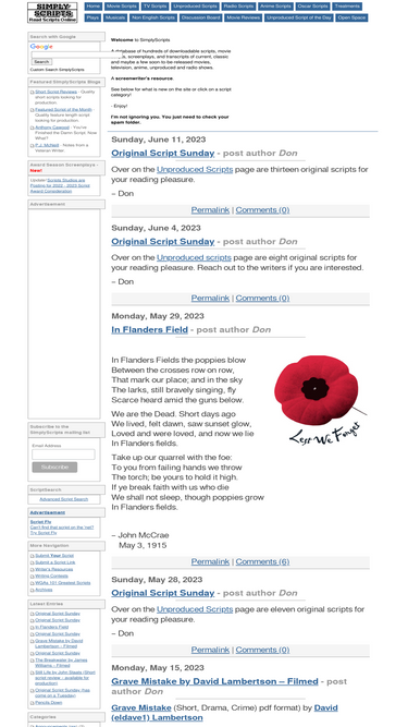 88%free screenwriters screenplay resource and discussion board. make your script better. read professional movie scripts and screenplays. searchable database of movie, television, radio, anime scripts, transcripts and plays. a screenwriter's resource. the screenplays may not be used or reproduced without the express written permission of the author.
