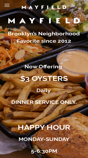 Mayfield is a seasonal American restaurant with a focus on fresh, quality ingredients prepared in a simple yet creative way.