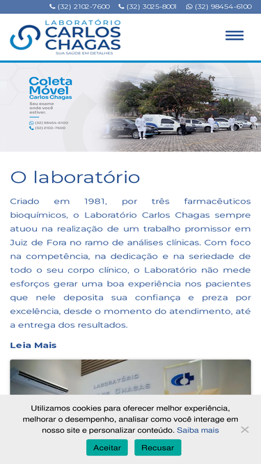 89%Laboratório Carlos Chagas. Mais de 30 anos de excelência em diagnósticos laboratoriais em Juiz de Fora e região. Marque seu exame.