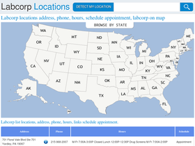 83%find labcorp locations. search by zip code,state,city,address and view address,phone,hours,links to schedule appointment on labcorp-locations.com
