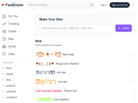 66%Generate unique emote combinations instantly with AI. Describe any mood and get the perfect emote combo.