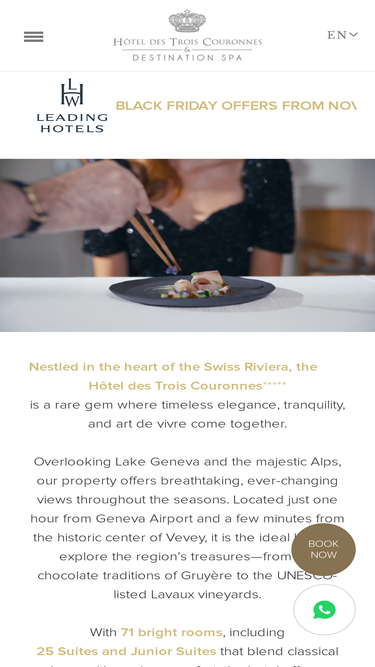 89%enjoy a luxurious stay in our royal palace in vevey. at the trois couronnes hotel & destination spa savor a captivating surrounding panorama.