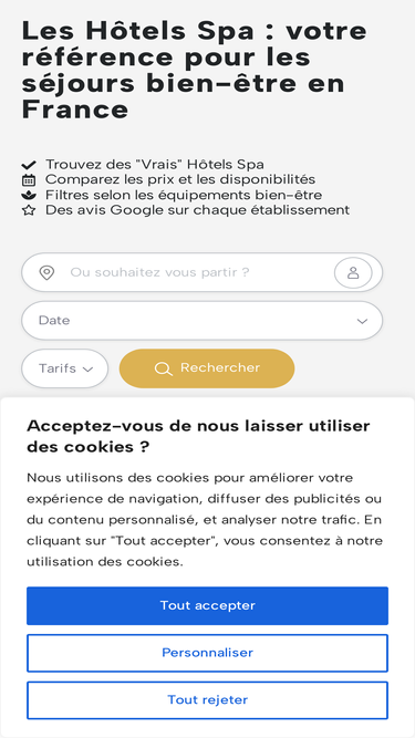 96%Les Hôtels Spa : 1er Site dédié aux Hôtels Spa en France. Les meilleurs offres de séjour ou week-end bien-être. Hôtels 2 à 5 étoiles, équipés de piscine, Jacuzzi, Spa, Sauna, Hammam... Comparez et Réservez au meilleur prix.