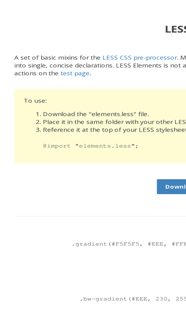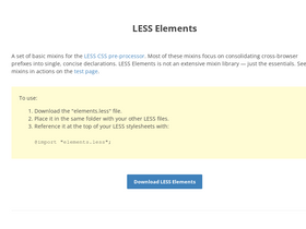 less elements is a set of basic mixins for the less css pre-processor. most of the mixins focus on consolidating cross-browser prefixes into single, concise declarations