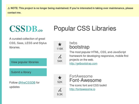 76%cssdb is a curated collection of great css, sass, less and stylus libraries