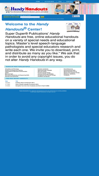 98%super duper� publications handy handouts� are free, online educational handouts on a variety of special needs and educational topics.