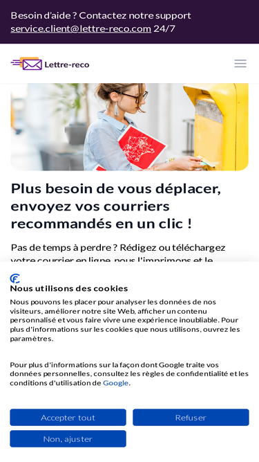 100%Lettre Reco est une plateforme qui vous permet d'envoyer un courrier recommandé en ligne 7 jours sur 7 et 24h /24 ! Personanlisez votre lettre avec vos informations et c'est envoyé !
