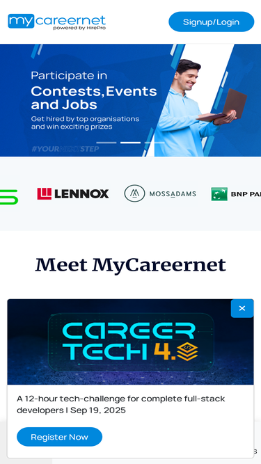 70%Explore job opportunities, participate in hiring challenges & events, and network with professionals. MyCareernet - we make dream careers happen!.