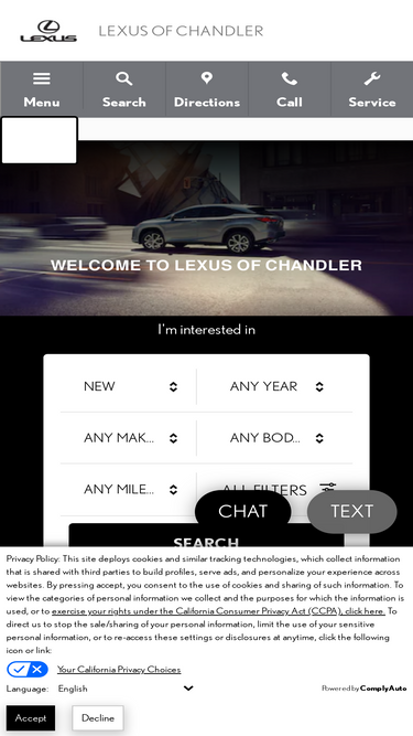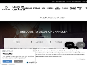 85%lexus of chandler is your local lexus dealerships serving phoenix, tempe, gilbert and scottsdale. we offer drivers sales, financing, service & parts. get started today!