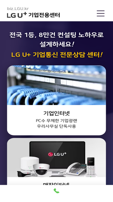 89%LG U+ 전국1등 기업통신 전용센터, 기업인터넷, 모바일인터넷, 매장인터넷, 기업전화, 전국대표번호, 차량관제. 8만건 컨설팅 노하우로 완벽설계.